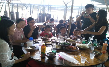 一起分享集体协作的成果,鸡,鱼,虾,排骨等等,对了,还有饺子,像魔法一样呈现在大家面前,话不多说,赶紧大快朵颐,下午还有更精彩的行程等着我们!