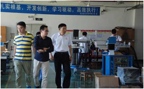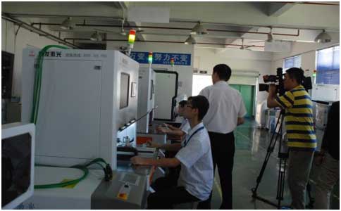 在凤凰卫视的杜编导热情的访问后,半岛(中国)激光副董事长王小峰带领杜编导以及他的同事参观生产车间,样品车间,研发车间,了解半岛(中国)生产的激光焊接机、激光打标机等。
