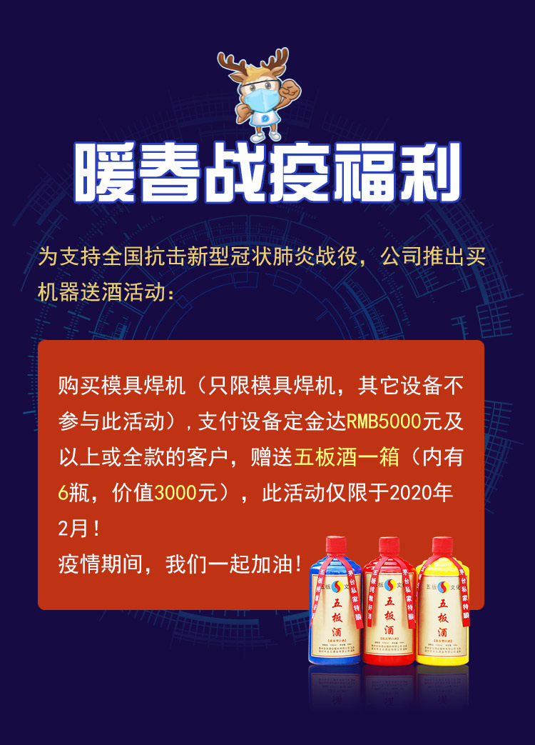 新型冠状肺炎战役福利——买半岛(中国)激光模具焊接机送五板酒
