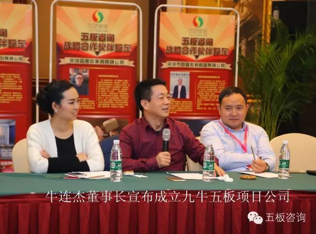 五板咨询2014年成立至今,从无到有,从小到大,经历了两年的艰苦创造摸索,五板如今也生根发芽如雨后春笋,9家项目公司遍布中国大地。华商30期班长——深圳市前海微加控股有限公司牛连杰董事长现场宣布和五板咨询成立九牛五板项目公司,成为我们五板咨询第10家项目公司!