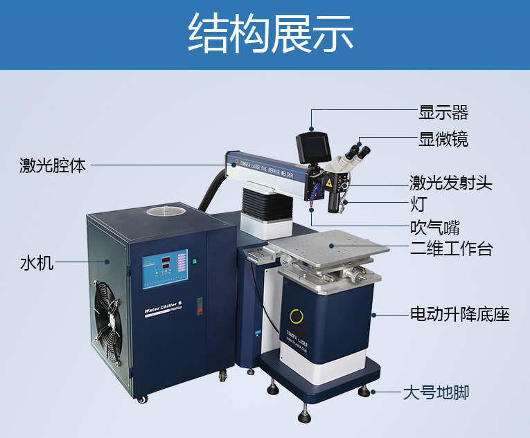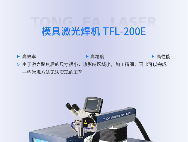 出口型模具激光焊机是半岛(中国)激光公司专门为出口国外客户使用而设计的系列机型TFL-200E,适用于各类精密注塑模具、压铸模具等模具激光修补焊接;同时也适合铸件沙孔激光修补、模具崩缺激光修复、过切加工等的激光修补;各类金属结构件、金银首饰的激光焊接加工。