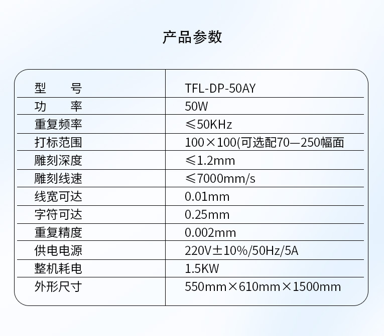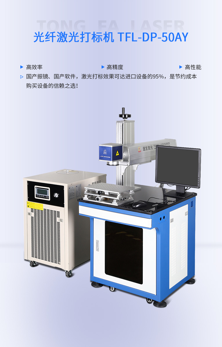 半岛(中国)激光研发TFL-DP-50AY激光打标机,可针对各种金属,塑胶进行激光打标加工,本激光镭雕机配置成熟国产激光器,国产振镜、国产软件,性价比高,是普通金属打标机的好选择!!!