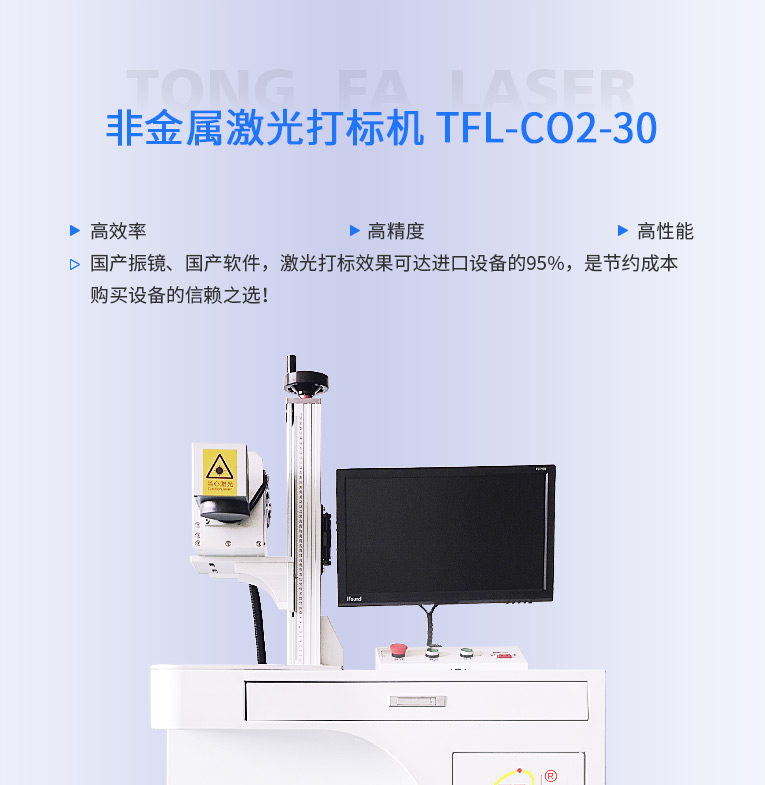 半岛(中国)激光研发TFL-CO2-30非金属激光打标机,是皮革激光打标、木材激光打标、石材激光雕刻、硅胶激光镭雕等非金属专用的二氧化碳激光镭雕设备,本二氧化碳激光镭雕机配置进口射频激光器等高端器件,性能稳定!!!