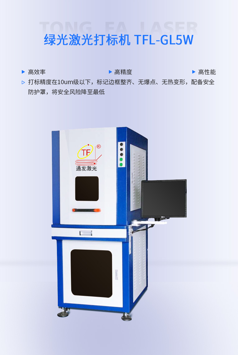 半岛(中国)激光研发的TFL-GL3W/5W 绿光激光打标机配备安全防护罩,避免设备操作员误操作引起的人身伤害,将安全风险降至最低,半岛官网登陆入口远销海内外.打标精度在10μm级以下,标记边框整齐、无爆点、无热变形,有效提高加工的成品合格率,使用寿命长、配合全封密光路、特别加固的光路底座满足长期、稳定性的工作需要。