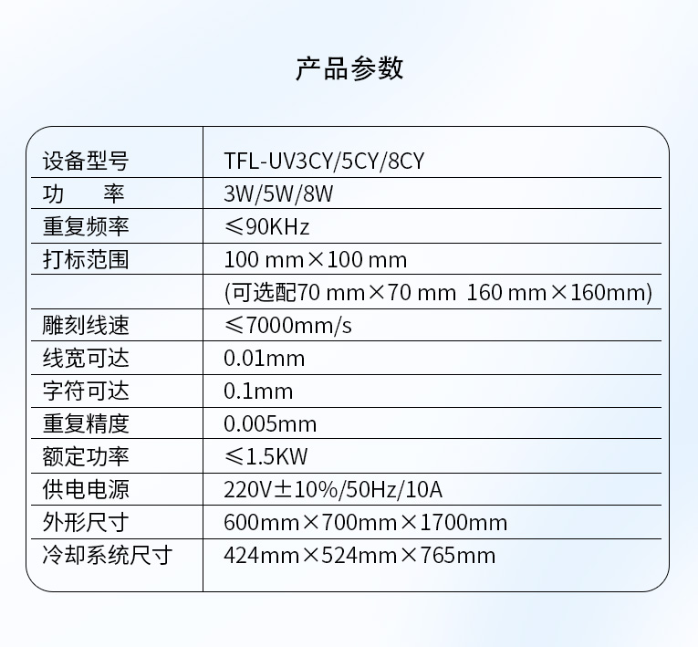 1、聚焦光斑极小,可进行超精细打标,字符可到0.1MM