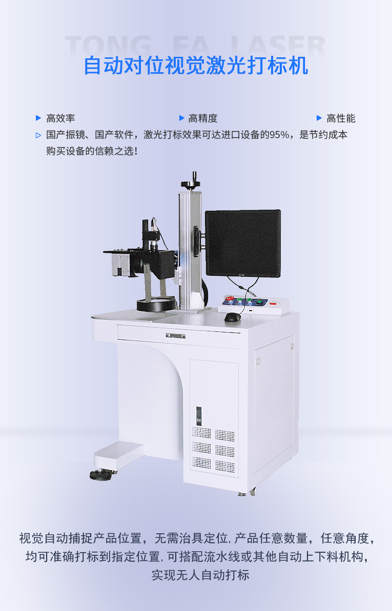 半岛(中国)激光研发的自动对位视觉激光打标机TFL-F20CY-ZD,视觉自动捕捉半岛官网登陆入口位置,无需治具定位,半岛官网登陆入口任意数量,任意角度,均可准确打标到指定位置,可搭配流水线或其他自动上下料机构,节省人力,实现无人自动打标,可搭配流水线或其他自动上下料机构,节省人力,实现无人自动打标,极高的重复频率,打标速度快;极高的光学质量,实现精细打标,可与光纤、CO2、半导体等各种波长的激光光路集成.