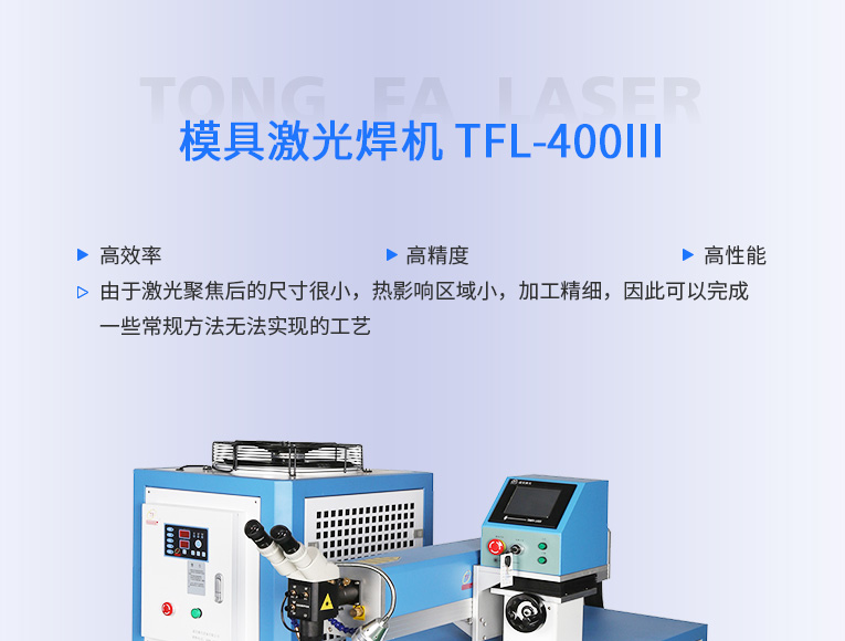 半岛(中国)激光TFL-400Ⅲ大功率模具激光焊机,比普通激光焊机修复模具效率快1.5-2倍,适合0.3-0.6激光焊丝,大功率更适合修复铍铜模具、铝模等较难修复的模具。