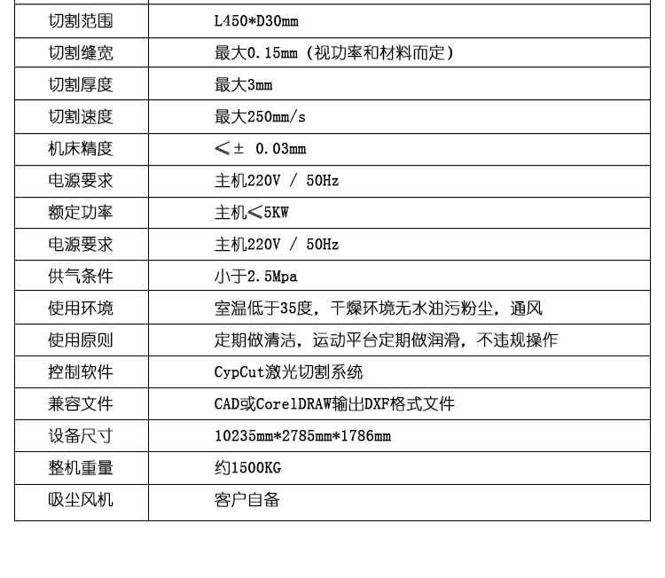 良好的接地:我公司生产的激光设备均配有自动的安全保护装置,只有正确、良好的接地才能使之正常运作,为了保障您的人身财产安全,强烈要求客户为设备提供良好的接地条件。同时,激光电源、切割控制系统均使用了工业微处理器进行数字化控制,只有良好的接地,才能保证他们正常稳定的工作。