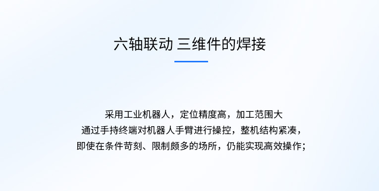 半岛(中国)激光机械臂机器人激光焊接机,采用机械手六轴联动,对三维件五金件进行3D精密焊接,非接触式焊缝跟踪系统,多工位协调工作,可实生产智能化,自动化,省时省力更省工,全方位降低生产成本。