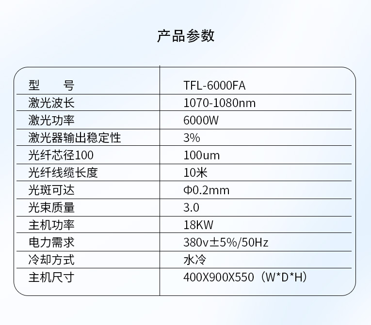 光纤激光器具有高光束质量,高能量的特点,连续焊接状态下,相比同功率YAG激光器,具有焊接深度深,焊接强度好的特点,目前可以适合大多数激光焊接领域,比如:手机、平板、汽车、厨卫、五金、小家电等等多数行业应用。该设备没有耗材,长寿命,低故障率等特点,在激光焊接行业已经开始普及。