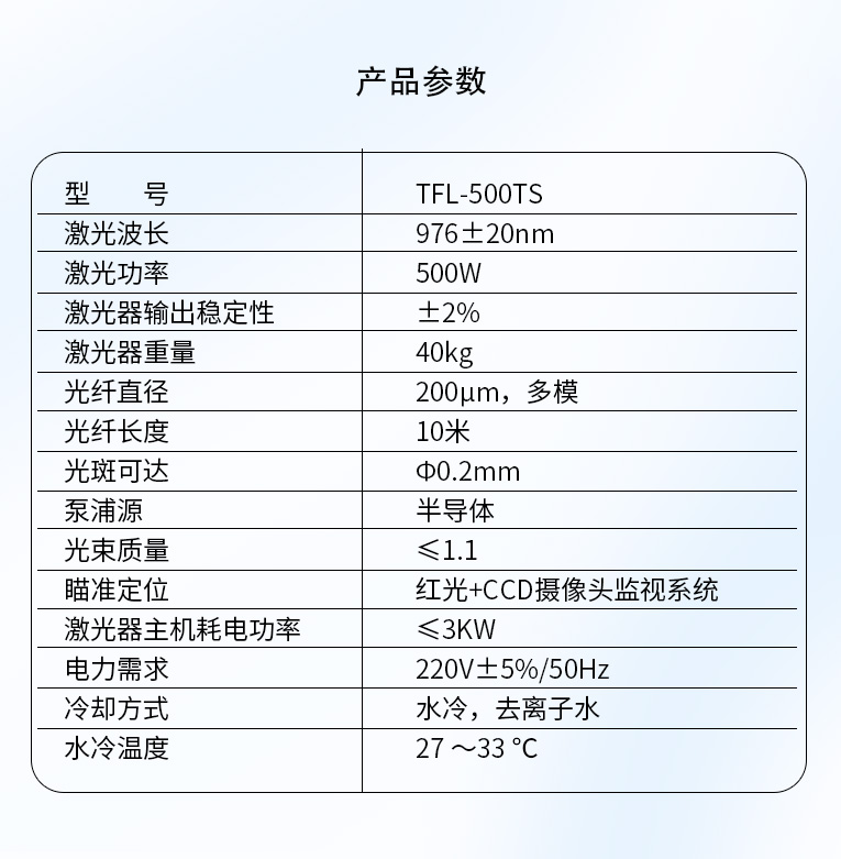 激光器主机耗电功率 |
